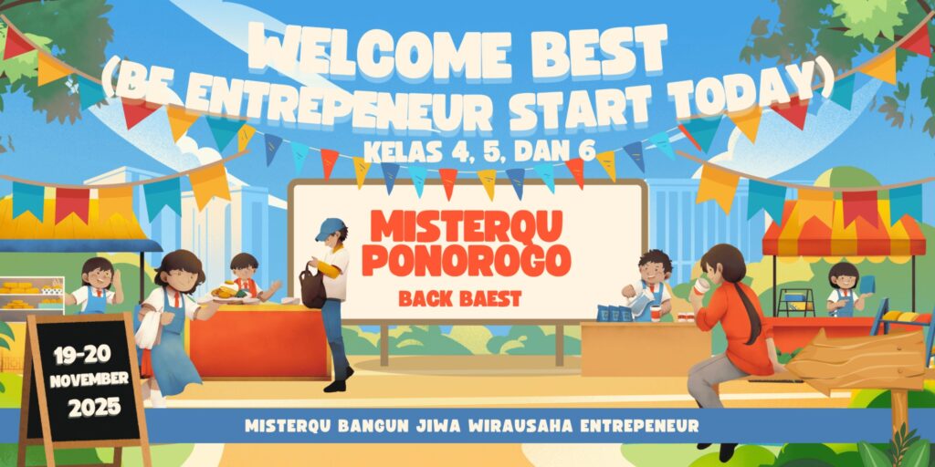BEST – Be Entrepreneur Start Today ✨ hadir sebagai program unggulan di MisterQu Ponorogo, sebuah SD/MI terbaik Ponorogo yang dikenal dengan pendekatan pembelajaran entrepreneurship sejak dini. Program ini dirancang untuk membangun karakter, tanggung jawab, dan mental wirausaha bagi siswa, yang di laksanakan pada tanggal 19-20 November 2025.